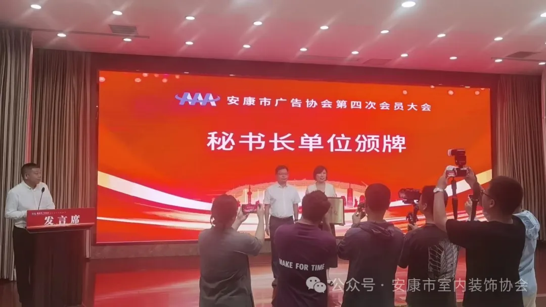 应安康市广告协会邀请,安康市室内装饰协会副会长刘海鹰、副会长兼秘书长张雪婷、副会长毛同利、副监事长艾全福、监事罗碧松参加了安康市广告协会第四次会员大会。