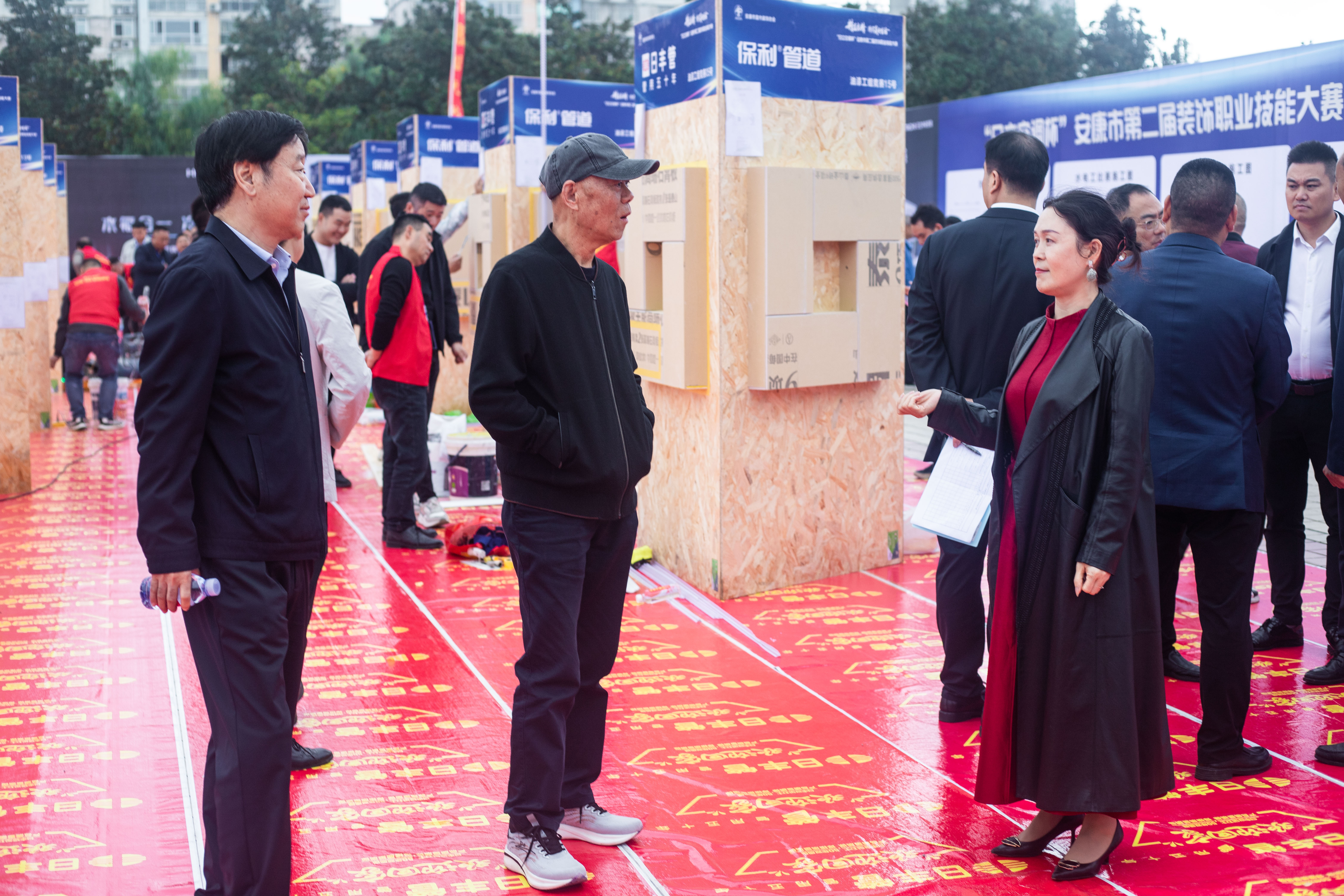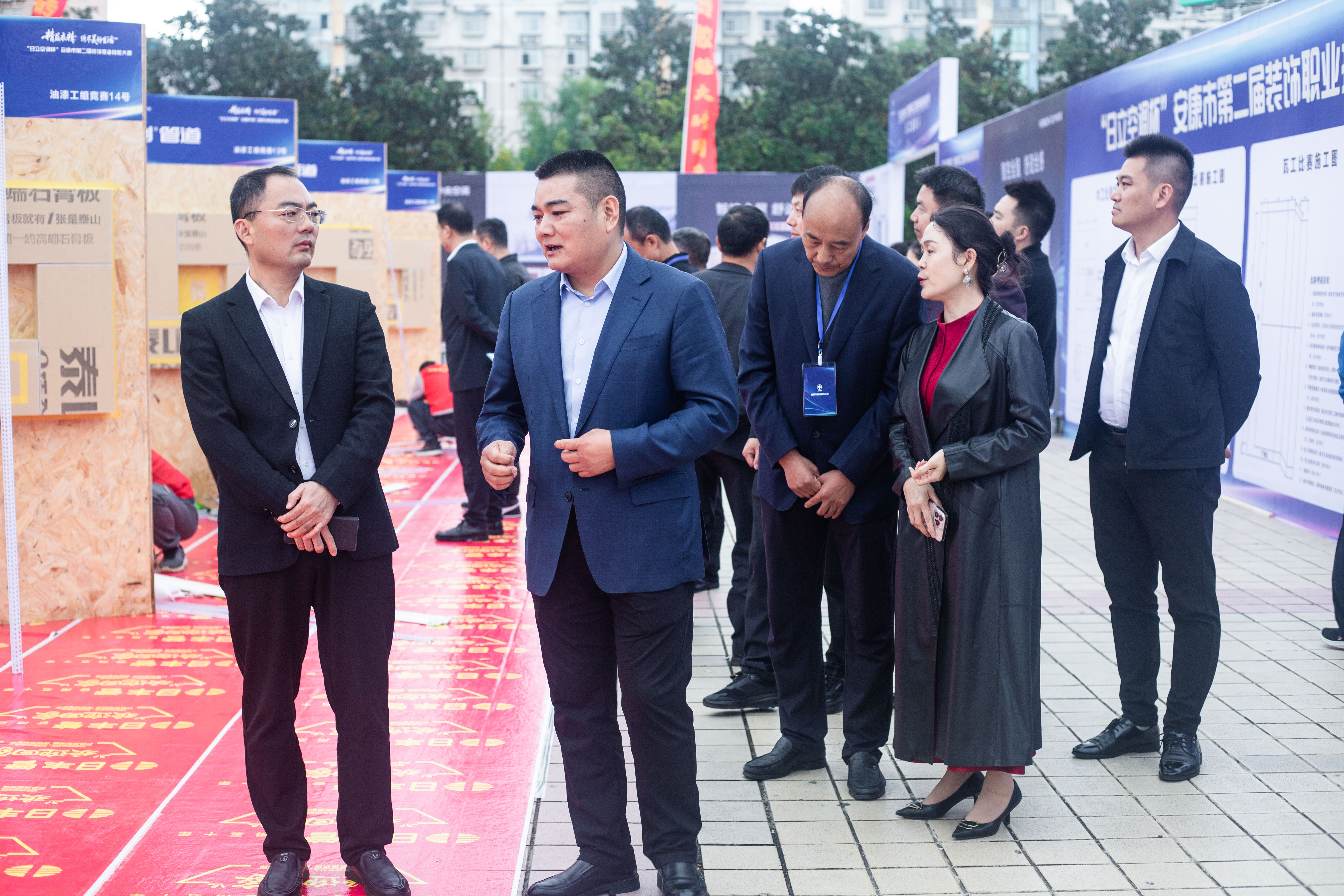 安康市工商联党组成员、副主席、秘书长兼总商会党委书记潘杰,安康市创业就业服务中心副主任贾学平,市创业就业服务中心职业技能培训科科长岳立,陕西省室内装饰协会名誉会长、党支部书记韩登新,省协会指导委员会主任张益民,2025年陕西省室内装饰行业镶贴工职业技能竞赛裁判长任文杰,以及安康市室内装饰协会理事会、监事会成员共同出席了大赛活动。现场汇聚三十余个知名品牌及企业参展,行业氛围浓厚。