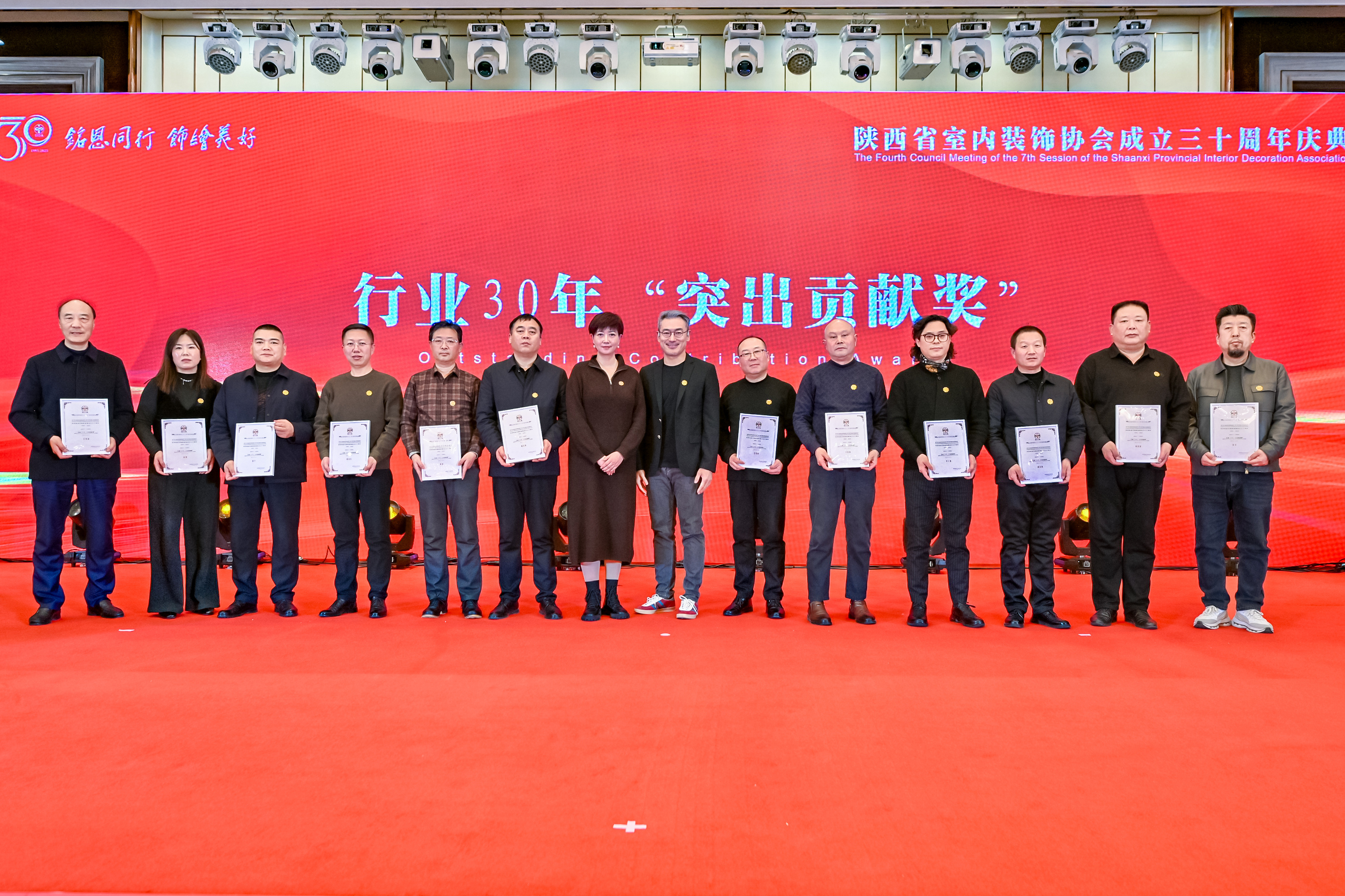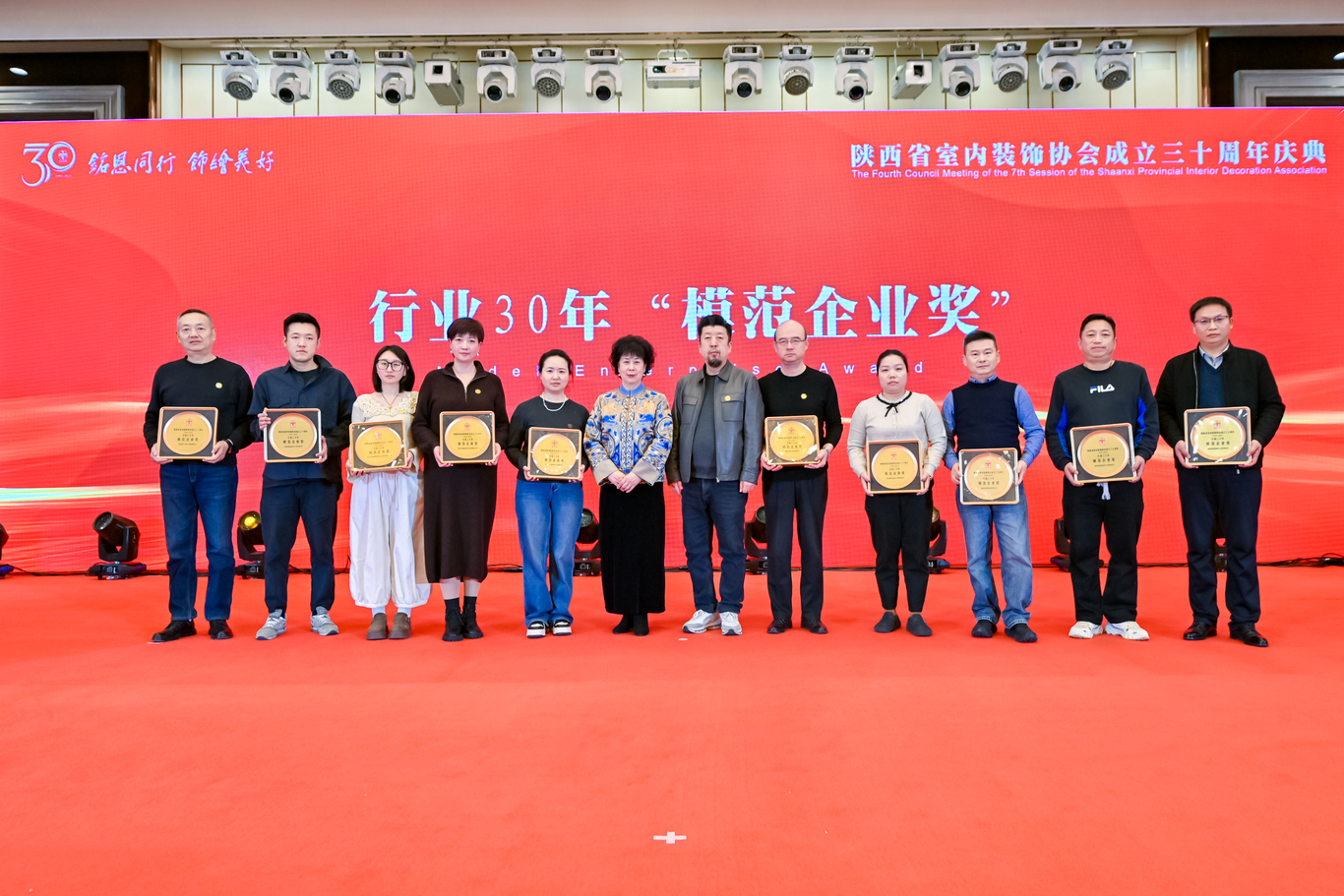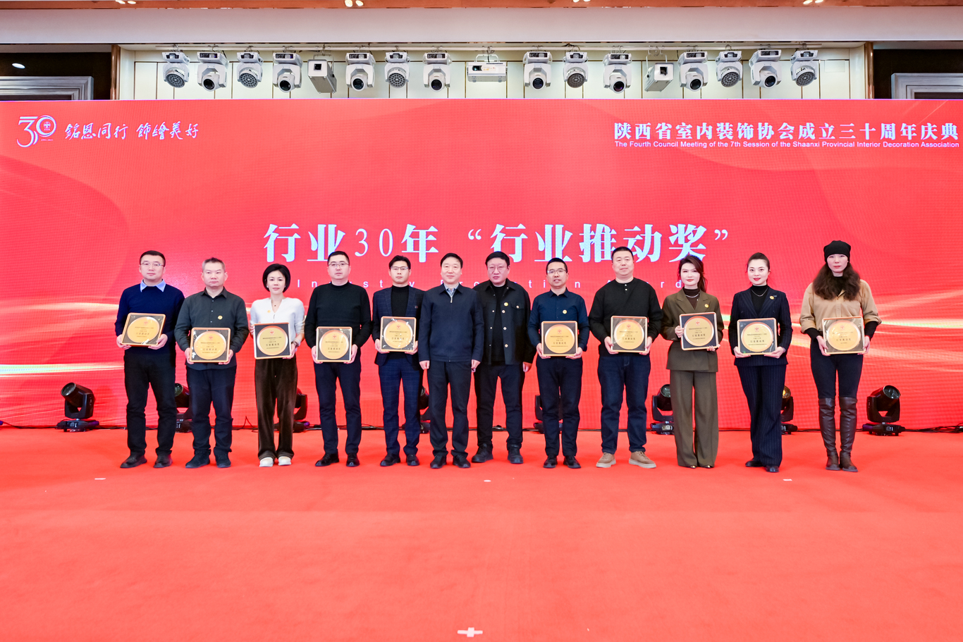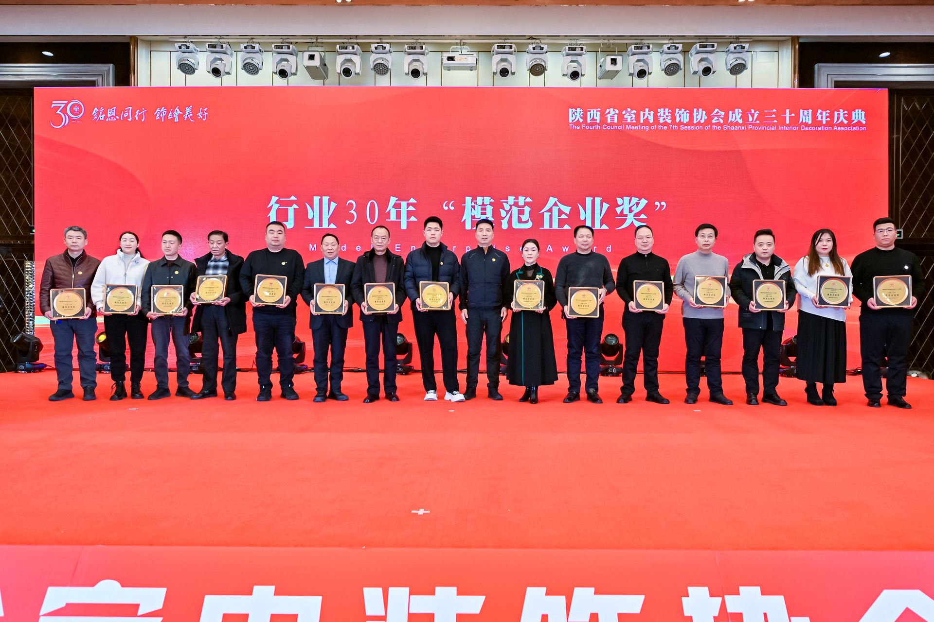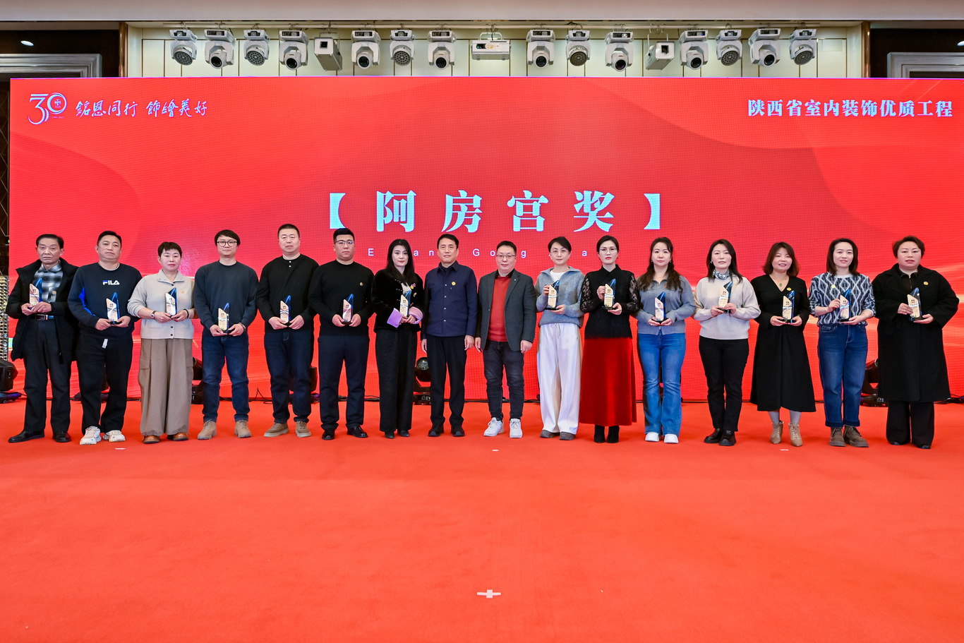 在备受瞩目的表彰环节,安康装饰行业收获颇丰,多项荣誉彰显行业硬实力。协会会长徐安、副会长刘海鹰凭借在行业深耕多年的坚守与担当,为区域装饰行业规范化发展作出的卓越贡献,荣获行业30年突出贡献奖;副会长单位陕西恒基筑业建设工程有限公司、安康市艺居装饰设计工程有限公司,副监事长单位安康达立成装饰工程有限公司以及常务理事单位陕西南枫装饰设计工程有限公司四家企业,以稳健的经营发展、过硬的工程品质获评行业30年模范企业奖,成为安康装饰企业的标杆典范;安康学院艺术学院依托在设计人才培养、产学研融合方面的持续投入与显著成效,斩获行业30年人才培育奖,为行业人才梯队建设提供坚实支撑;陕西安康居然之家天贸城家居建材有限责任公司凭借对区域家居建材市场的整合赋能、行业生态的构建推动,荣获行业30年行业推动奖;安康中和装饰设计工程有限公司则凭借优质的工程质量、创新的设计理念,在众多参评项目中脱颖而出,斩获陕西省室内装饰行业工程质量最高荣誉——阿房宫奖。
