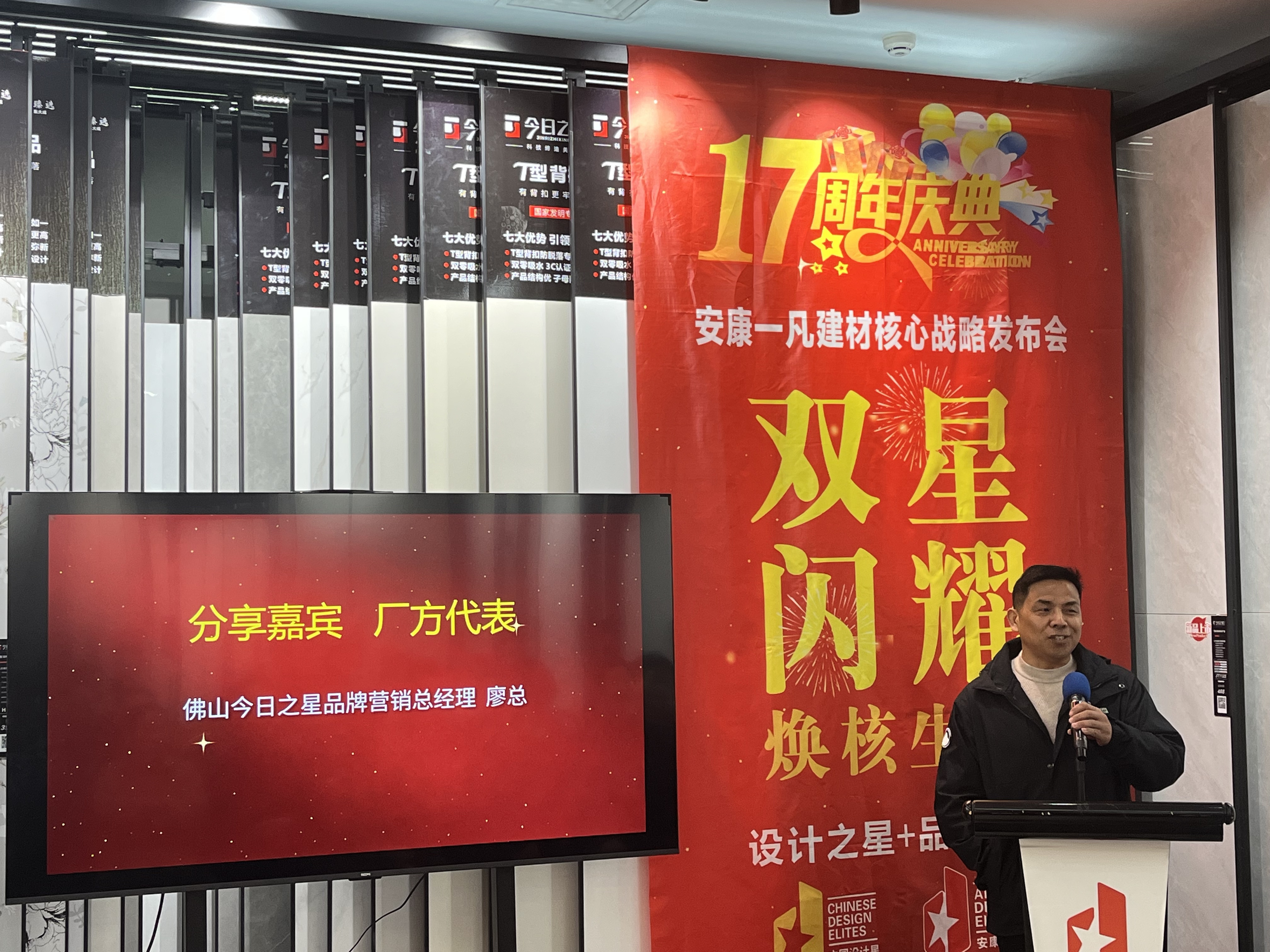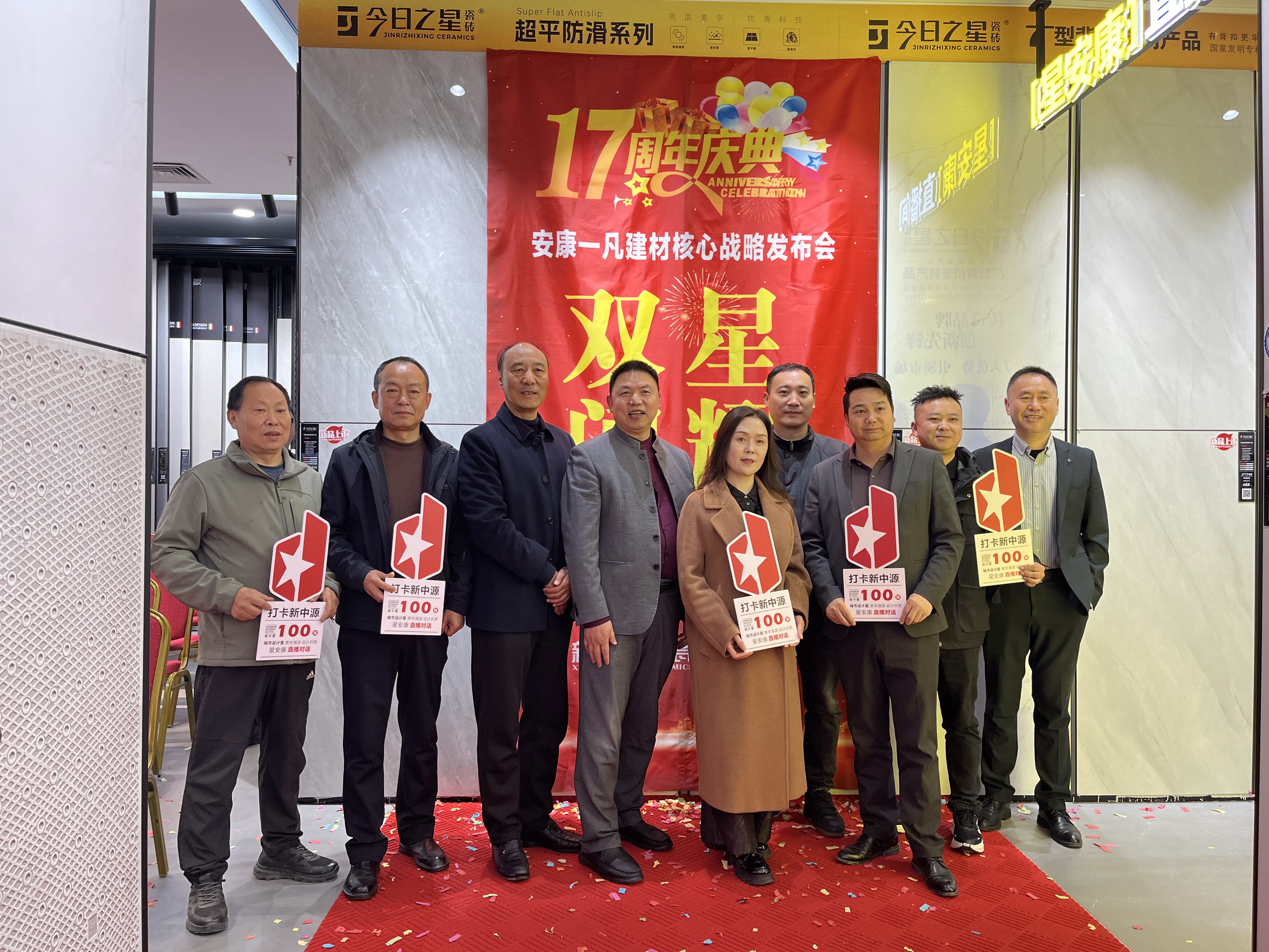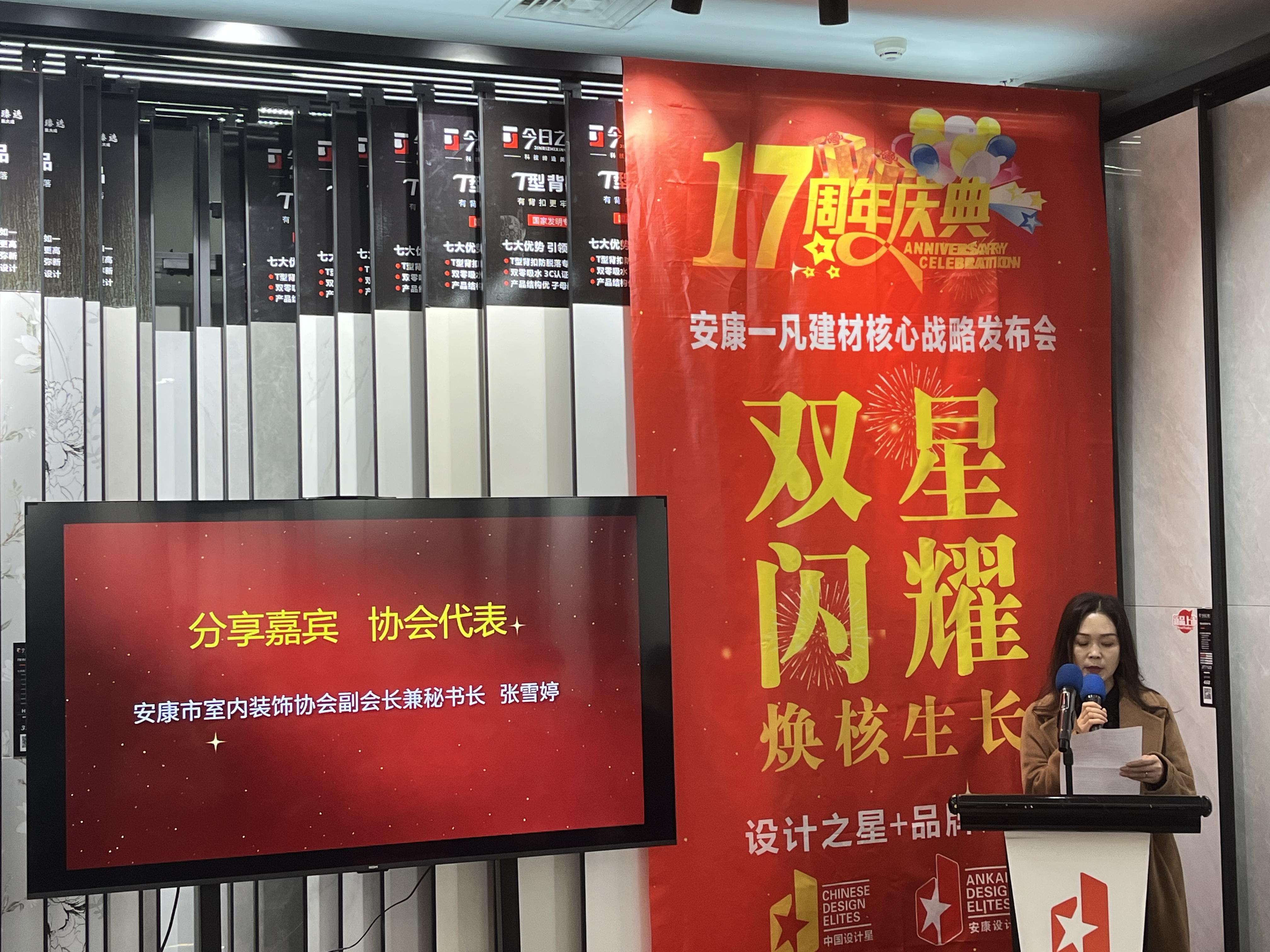 3月12日,以“双星闪耀 焕核生长”为主题的一凡建材2026核心战略发布会在新中源陶瓷天贸城居然之家店隆重举行。安康市室内装饰协会副会长刘海鹰、吴旗新,副会长兼秘书长张雪婷,副监事长艾全福、李用红,监事曹英波、罗碧松,常务理事朿荣、刘涛,会员颜长沙、王勇、麻国富、刘龙等应邀出席活动,与行业同仁共同见证一凡建材战略升级的重要时刻。